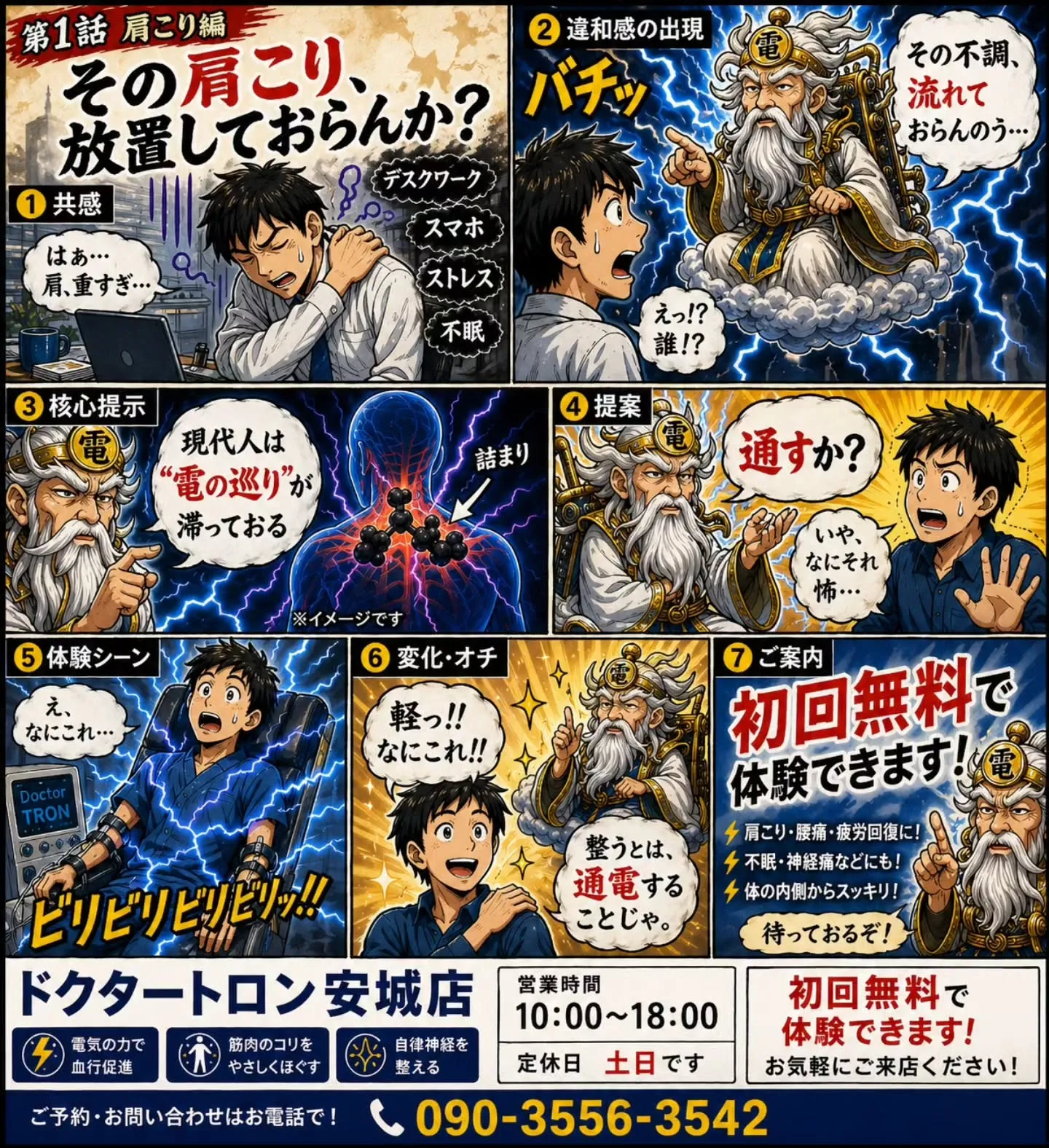 とりあえず、電の巡りというわかるようでわからんワードか気に入... 2026/04/27 とりあえず、電の巡りというわかるようでわからんワードか気に入ってます あと修正が面倒だったのでやらなかったけど、電気じゃなくて正確には電位です あと治療機こんなにでかくないです が、 だいたいこんな感じ??で、広告マンガとしては不満はないです